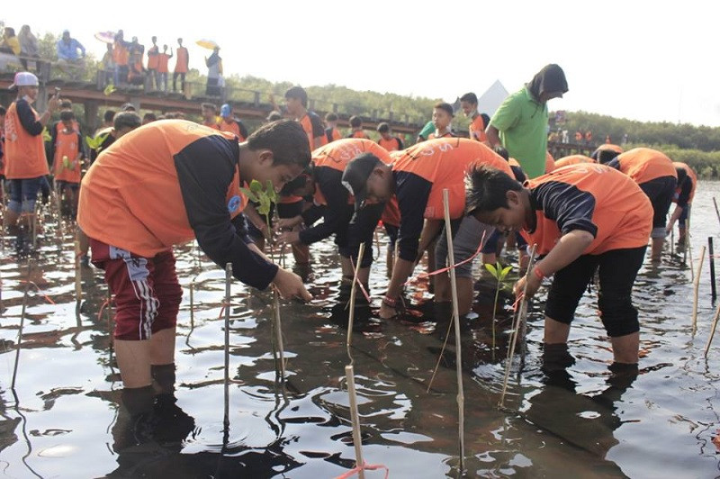 Hutan bakau menjadi penahan gelombang mencegah abrasi dan mengurangi intrusi air laut. Hutan bakau mengurangi pencemaran dengan menyerap logam berat. Selain hutan bakau sebagai penyerab karbon atau blue carbon, udara menjadi bersih dan segar. Kunjungi ekowisata BJBR Probolingga yang sejuk, teduh, nyaman, bersih dan terpelihara. Hari minggu, 14 oktober 2014 MTsN Bangkalan Madura, 350 siwa kunjungan ke BJBR Probolinggo dalam program studi lingkungan.