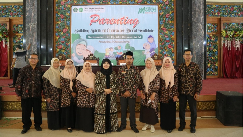 Halo sahabat furqon, pernahkah kalian mendengar istilah parenting? Parent dalam Bahasa inggris mempunya arti orang tua. Lalu PARENTING itu apa sih? Bagi sahabat furqon yang belum paham, Parenting adalah ilmu tentang bagaimana cara mengasuh, membimbing, dan mendidik anak dengan cara yang baik dan benar. Sehingga di dalam diri anak terbentuk sebuah karakter dan perilaku yang positif juga berakhlakul karimah. Pada awal tahun 2023 ini, tepatnya pada hari Kamis, 9 Februari kemarin, sekolah kita tercinta MTsN Bangkalan ini mengadakan acara parenting dengan tema "Building Spiritual Character Birrul Walidain". Acara ini diadakan di gedung Rato Ebuh dengan dihadiri oleh kakak-kakak kelas 9 dan 8-i bersama dengan orang tua mereka masing-masing. Dalam menyukseskan acara ini, MTsN Bangkalan mengundang seorang narasumber lohhh!! Narasumber tersebut adalah Dr. Hj. Like Raskova, M.Ed, beliau merupakan dosen Universitas Negeri Malang yang jauh-jauh datang dari Malang ke Bangkalan sekedar untuk berbagi ilmu mengenai cara pola asuh anak yang baik dan benar kepada semua orang tua yang hadir di acara ini.